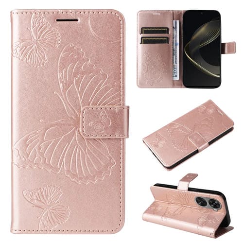 - 1x Funda para Huawei Nova 12 Se y Nova 11 Se de Cuero con Tapa y Patrón Mariposa 3D (Oro Rosa)