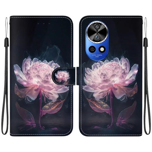 Funda de Cuero para Huawei Nova 12 Ultra con Dibujo Coloreado Crystal Texture (Peonía Púrpura)