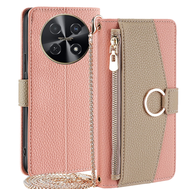 Funda Cruzada de Cuero con Textura Litchi para Huawei Nova 12I 4G (Rosa)