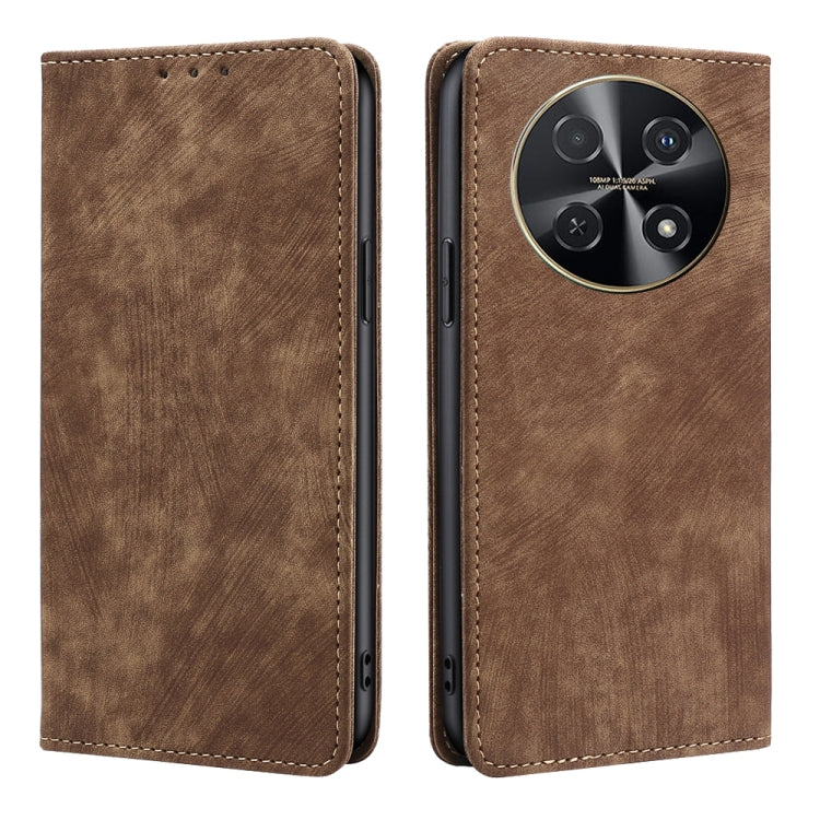 Funda de Cuero Magnética para Huawei Nova 12I 4G con Rfid y Cepillo Antirrobo (Marrón)