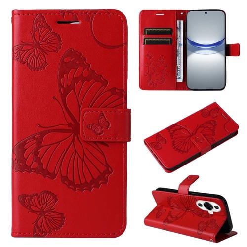 Funda de Cuero con Tapa para Huawei Nova 12S con Patrón Mariposa 3D (Rojo)