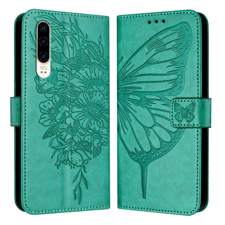 Funda de Cuero para Huawei P30 con Mariposa en Relieve (Verde)