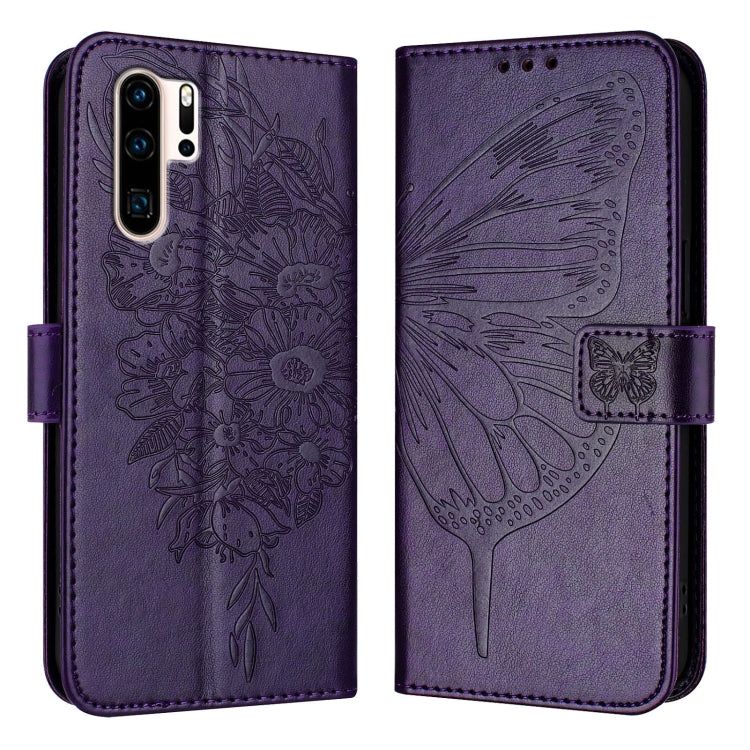 Funda de Cuero para Huawei P30 Pro con Mariposa en Relieve (Púrpura Oscuro)