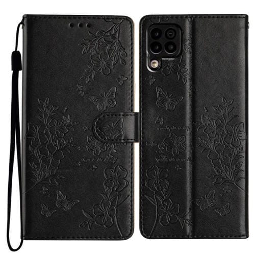 Funda para Huawei P40 Lite de Cuero con Relieve Flor de Amor y Mariposa (Negro)