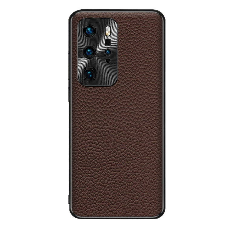 Funda para Huawei P40 Pro de Cuero Genuino con Textura Litchi (Café)