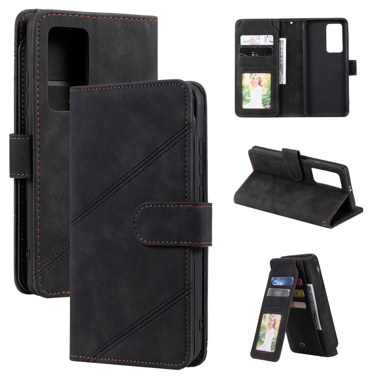 Para Huawei P40 PRO Siente la piel de la piel Funda de cuero Horizontal Flip PU con soporte y tragamonedas de tarjetas múltiples y billetera y laminador y marco de fotos (negro)