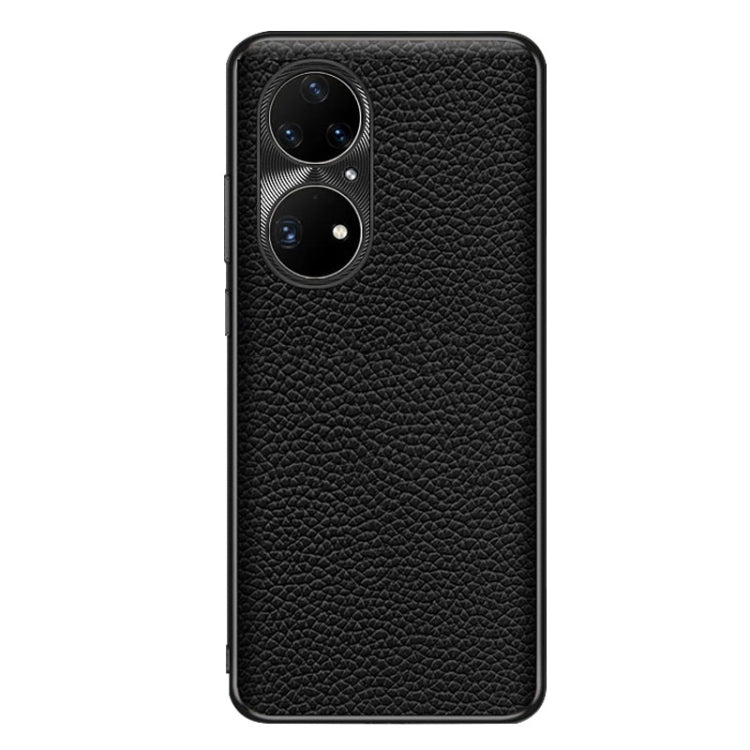 Funda para Huawei P50 Pro de Cuero Genuino con Textura Litchi (Negro)