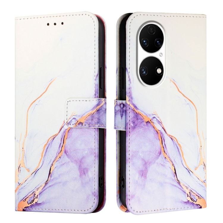 Funda de Cuero para Huawei P50 Pt003 con Tapa y Patrón de Mármol (Ls006 Blanco Púrpura)