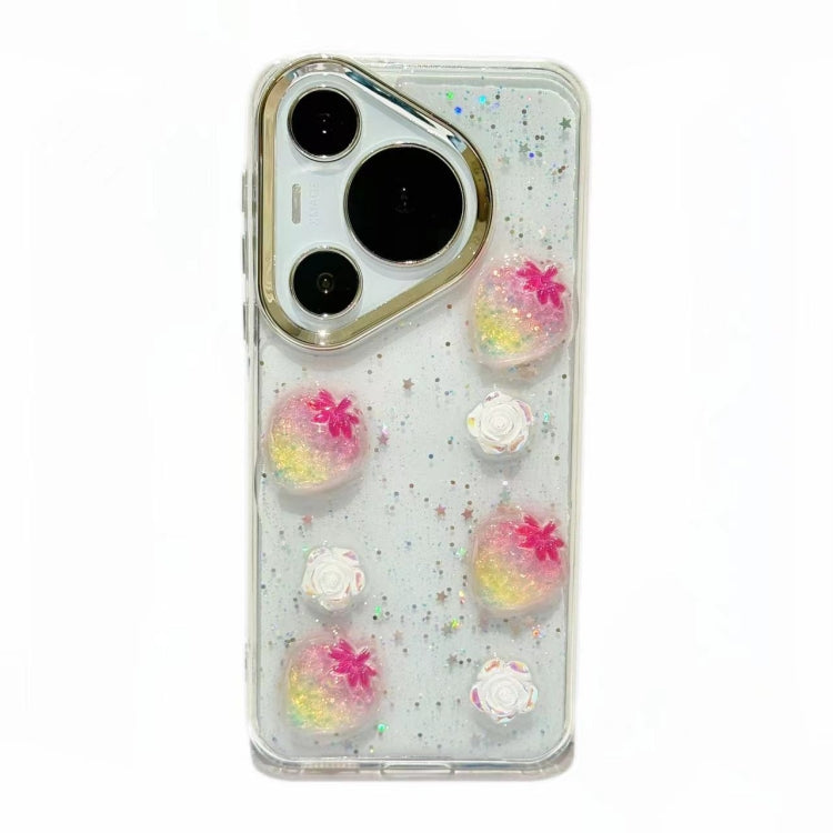 - 1x Estuche para Huawei P60 y P60 Pro TPU con Flor de Fresa 3D y Marco Galvanizado (Fresa Rosa)