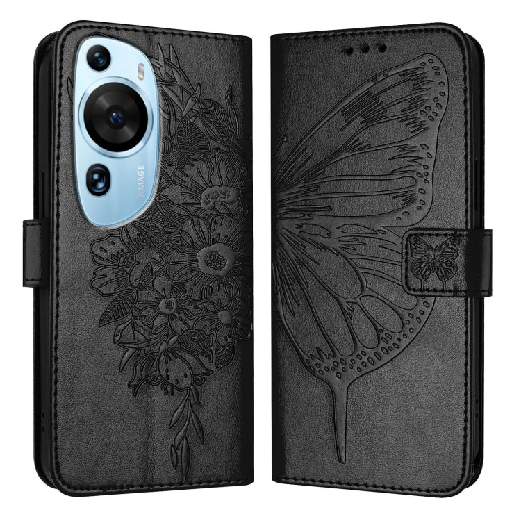 Funda de Cuero para Huawei P60 Art con Mariposa en Relieve (Negro)
