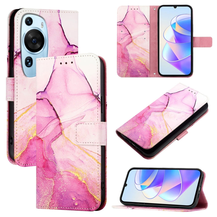 Funda de Cuero con Tapa para Huawei P60 Art Pt003 con Patrón de Mármol (Rosa Púrpura Dorado)
