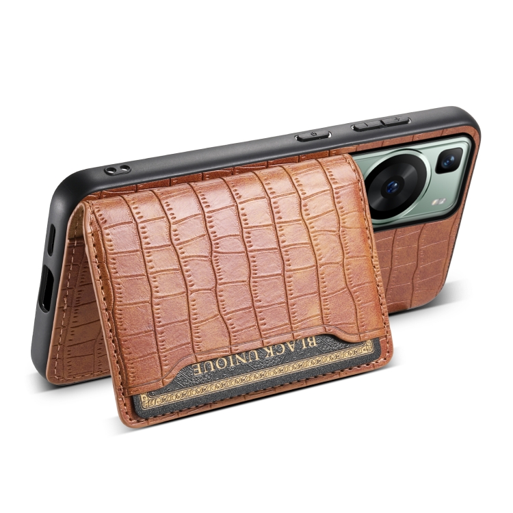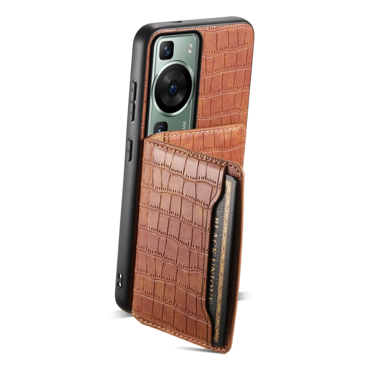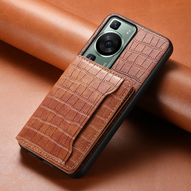 Funda para Huawei P60 con Diseño Bolsa de Tarjeta y Textura de Cocodrilo (Marrón)