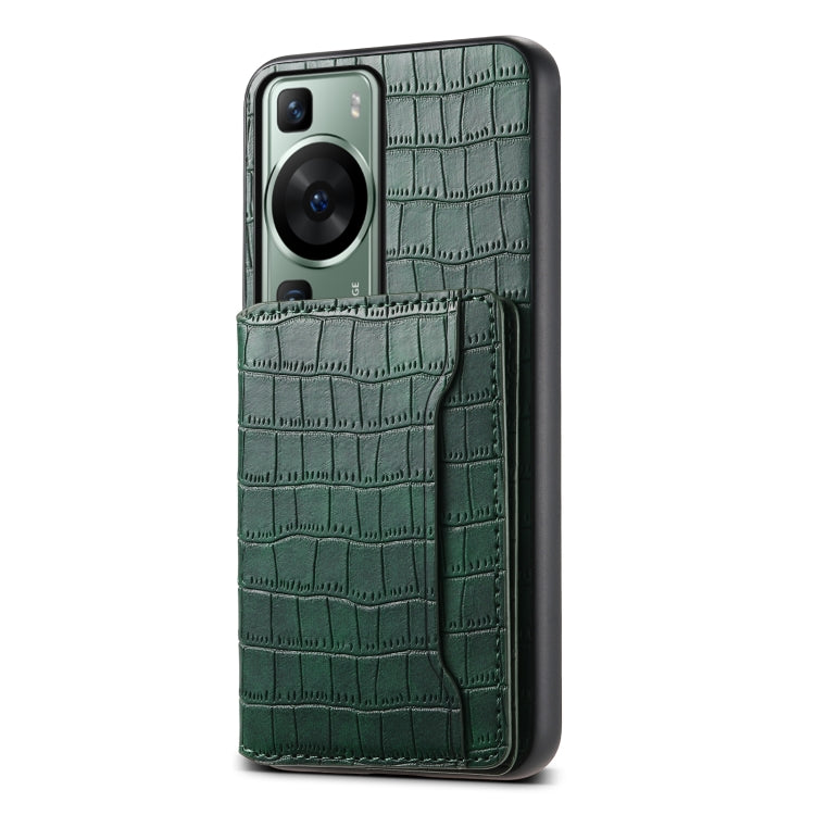 Funda para Huawei P60 con Diseño de Bolsa de Tarjeta y Textura de Cocodrilo (Verde)