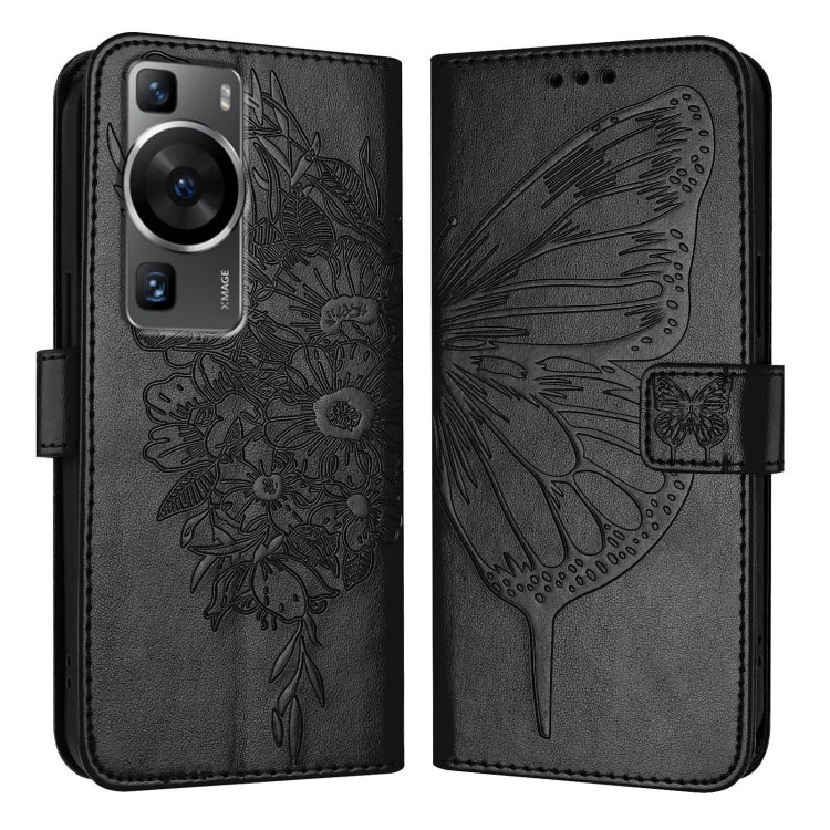 Funda de Cuero para Huawei P60 y P60 Pro con Mariposa en Relieve (Negro)