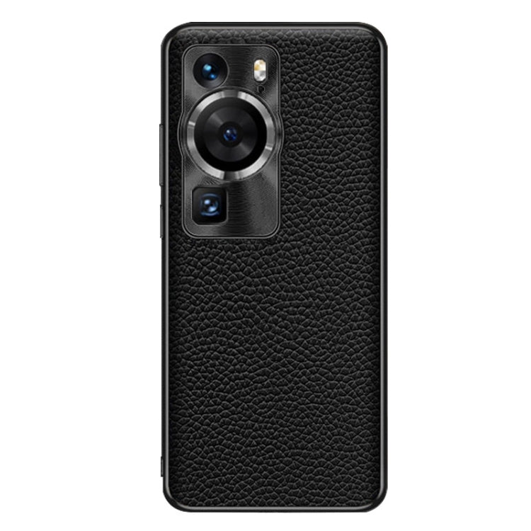 Funda de Teléfono Huawei P60 Pro Textura Litchi Cuero Genuino (Negro)