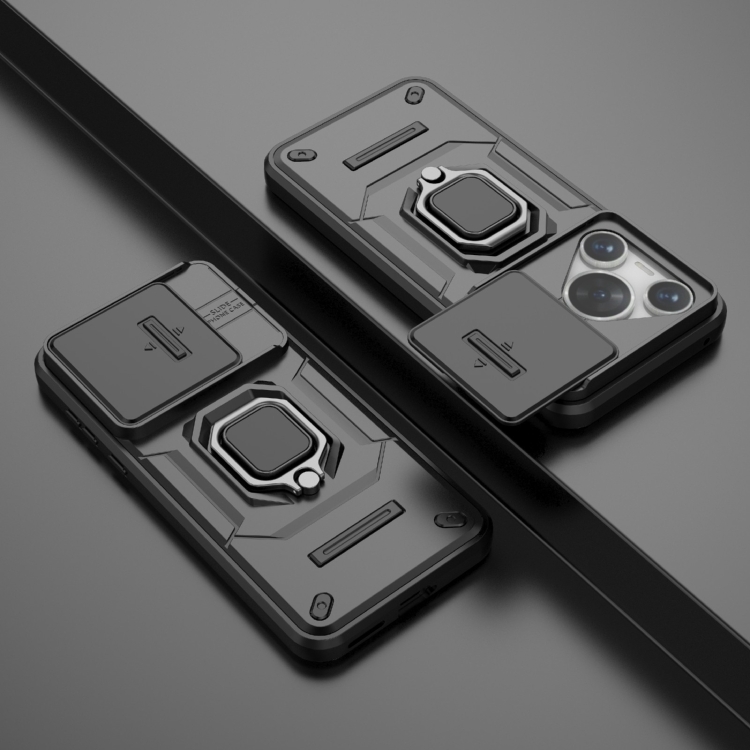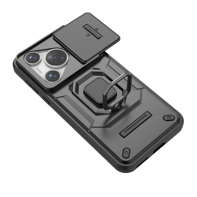Funda para Huawei P70 5G Sliding Camshield TPU + PC a Prueba de Golpes con Soporte (Negro)