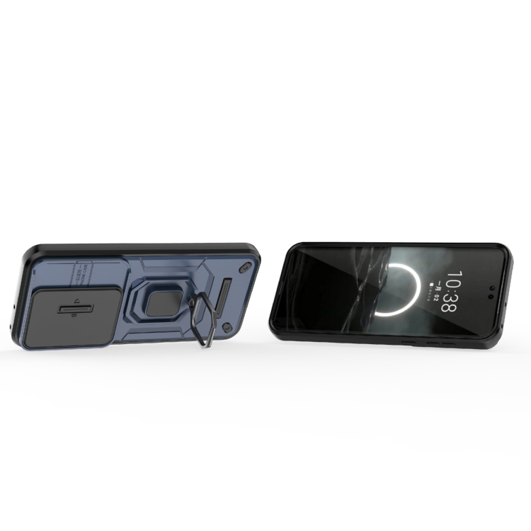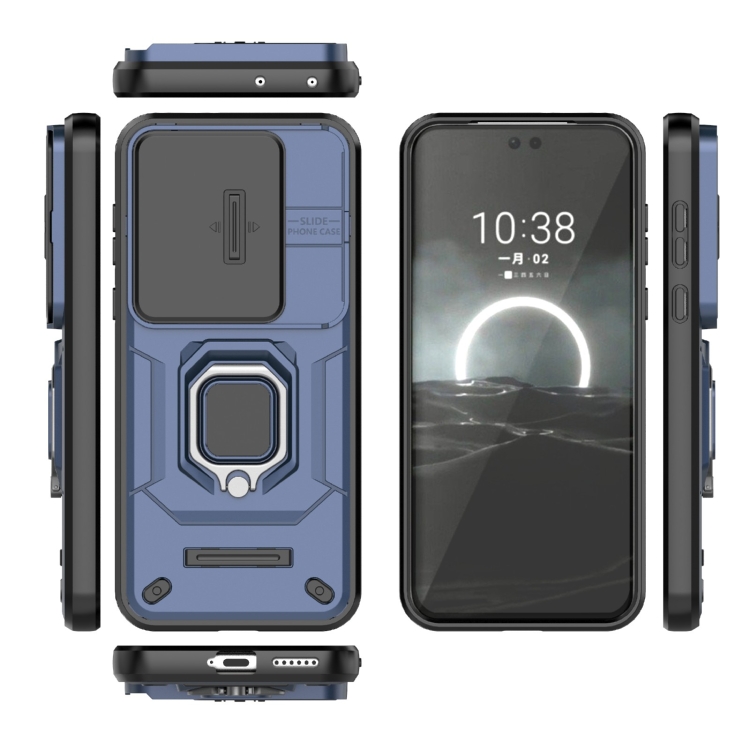 Funda para Huawei P70 Pro 5G con Sliding Camshield TPU + PC a Prueba de Golpes con Soporte (Azul)