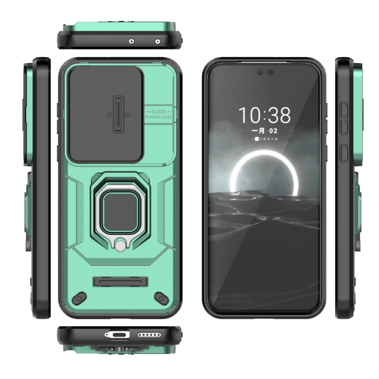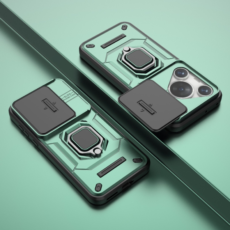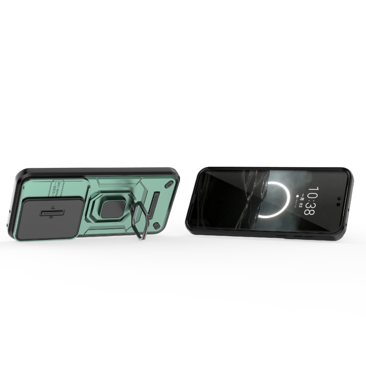 Funda para Huawei P70 Pro 5G Sliding Camshield TPU + PC a Prueba de Golpes con Soporte (Verde)
