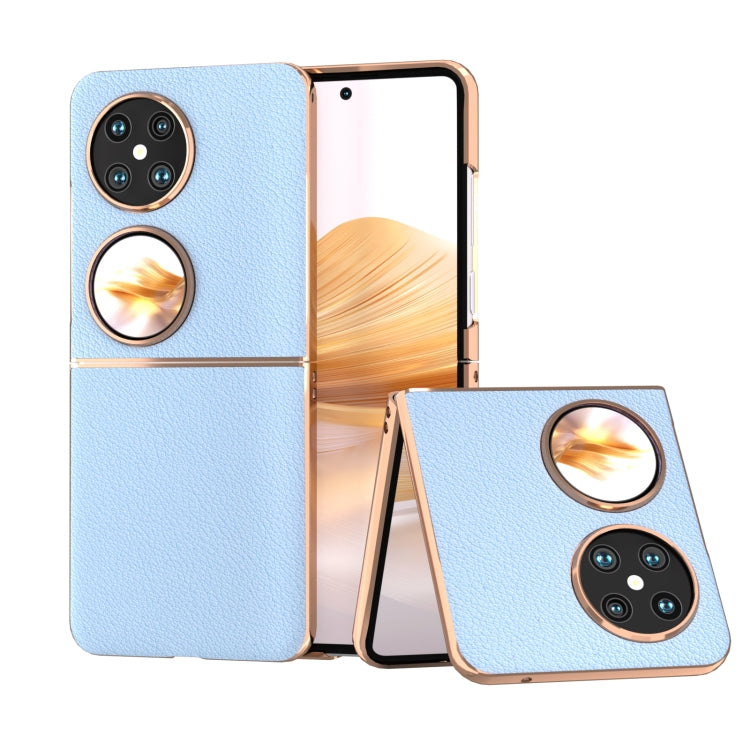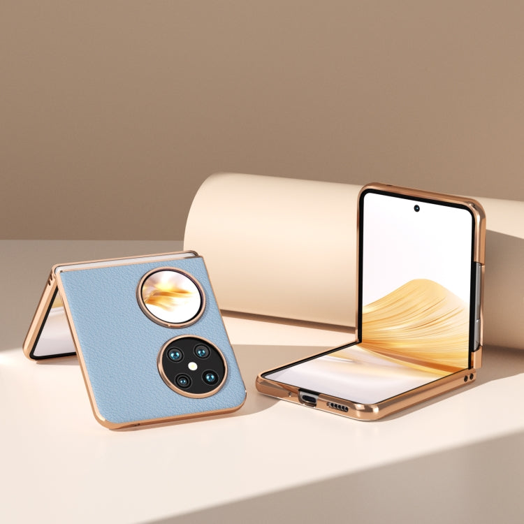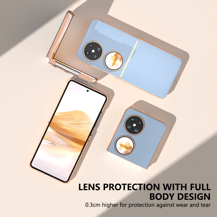 Funda para Huawei Pocket 2 Serie Wave de Cuero Genuino con Nanochapado (Azul)