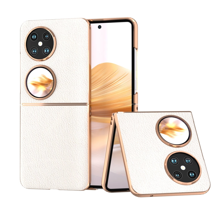 Funda para Huawei Pocket 2 Serie Wave de Cuero Genuino con Nanochapado (Gris)