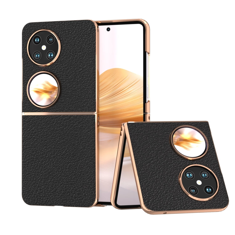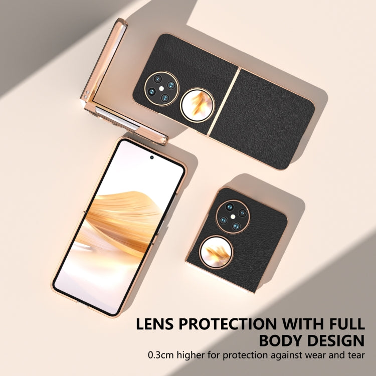 Funda para Huawei Pocket 2 Serie Wave de Cuero Genuino con Nanochapado (Negro)