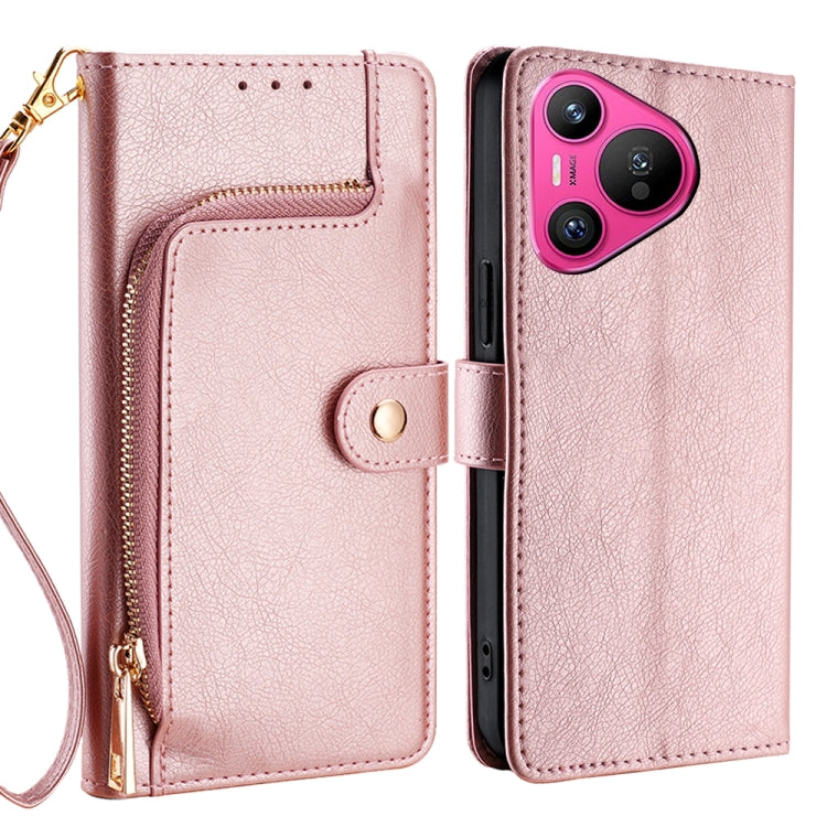 Funda de Cuero para Huawei Pura 70 5G con Bolsa y Cremallera (Oro Rosa)
