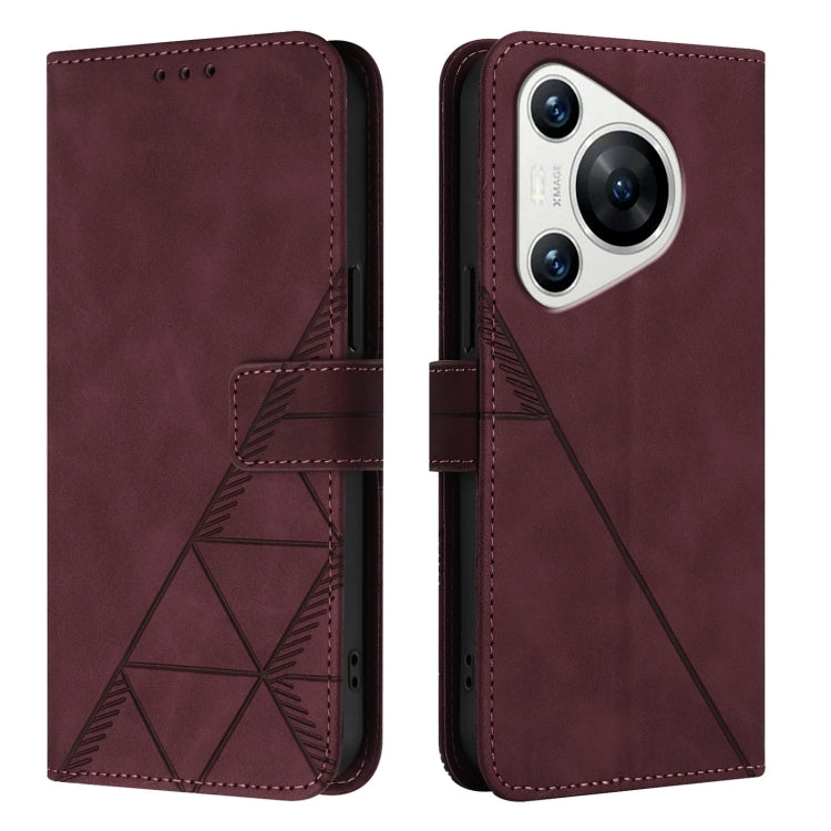 Funda de Cuero para Huawei Pura 70 Crossbody con Tapa en Relieve 3D (Rojo Vino)