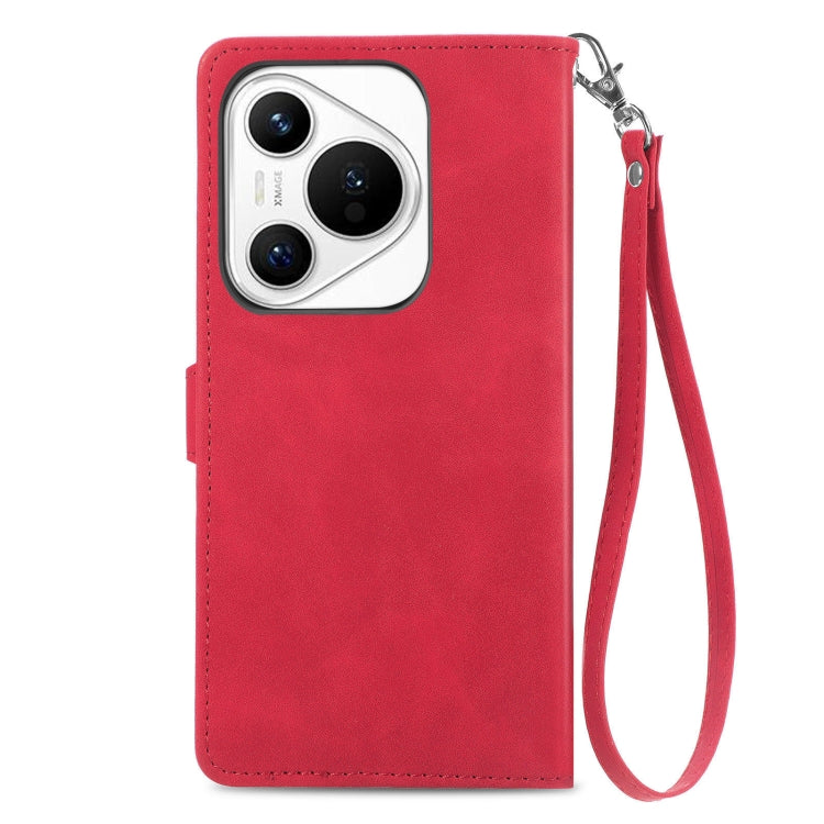 Funda de Cuero para Huawei Pura 70 con Cremallera y Flores en Relieve (Rojo)