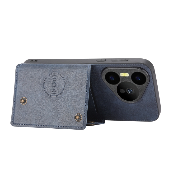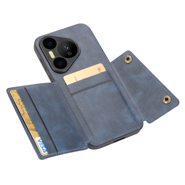Funda Magnética para Huawei Pura 70 con Ranuras para Tarjetas y Doble Hebilla (Azul)