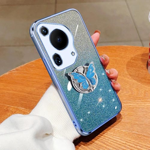 Funda TPU para Huawei Pura 70 con Soporte de Mariposa y Brillo Degradado (Azul Sierra)