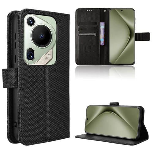 Funda de Cuero para Huawei Pura 70 Pro y 70 Pro+ con Textura de Diamante (Negro)
