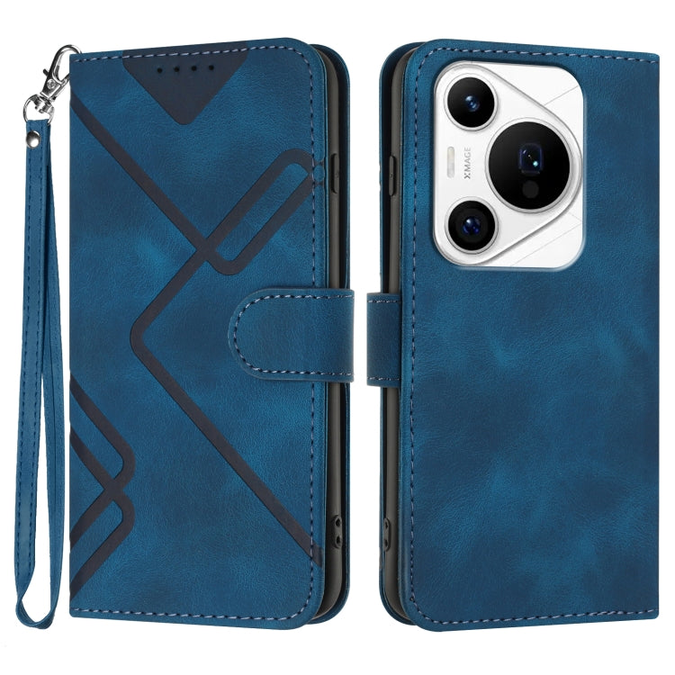 Funda para Huawei Pura 70 Pro/70 Pro+ de Cuero con Sensación de Piel y Patrón de Líneas (Azul Real)