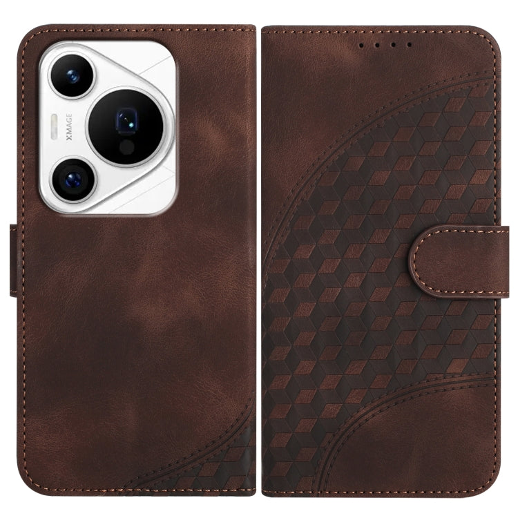 Funda de Cuero para Huawei Pura 70 Pro/70 Pro + Yx0060 con Relieve y Cabeza de Elefante con Cordón (Café)