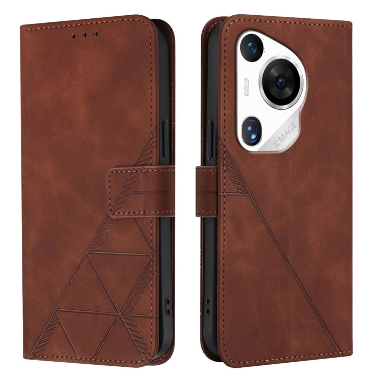 Funda de Cuero Huawei Pura 70 Pro Crossbody con Tapa en Relieve 3D (Marrón)