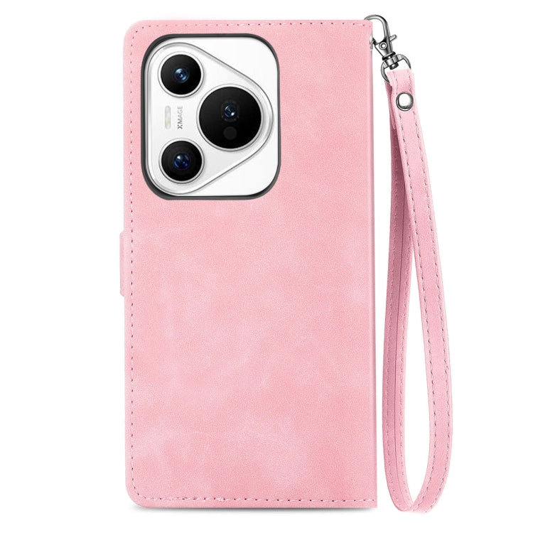 Funda de Cuero para Huawei Pura 70 Pro+ con Cremallera y Flores en Relieve (Rosa)