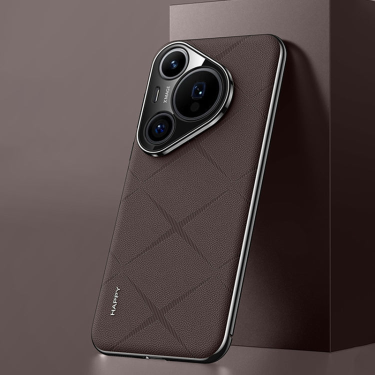 Funda de Cuero Liso para Huawei Pura 70 Pro / Pro+ Teléfono PC (Marrón)