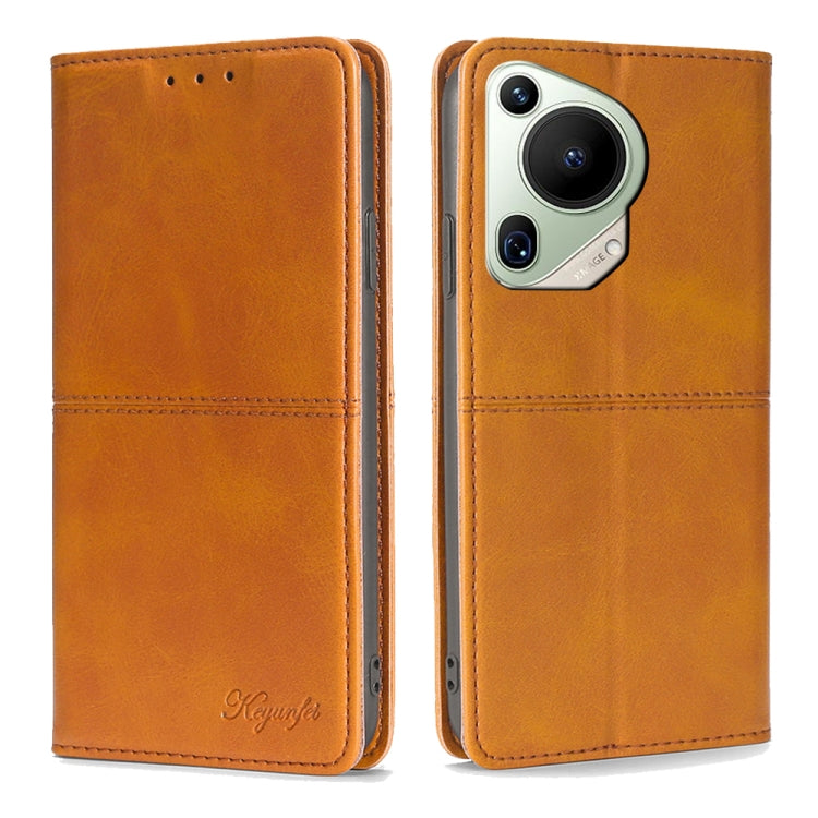 Funda de Cuero Magnético para Huawei Pura 70 Ultra 5G con Textura de Vaca (Marrón Claro)