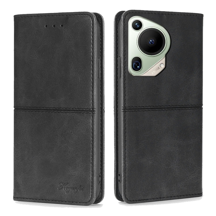 Funda de Cuero Magnético para Huawei Pura 70 Ultra 5G con Textura de Vaca (Negro)