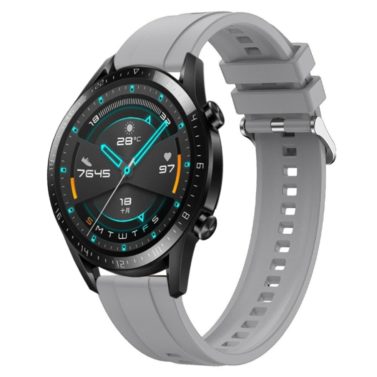 Correa de silicona para Huawei Watch GT 42mm/46mm con patrón de neumático y hebilla plateada (Gris Claro)