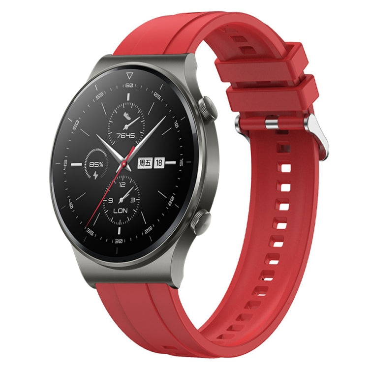 Correa de Silicona para Huawei Watch GT2 Pro GT 2E GT2 46mm Patrón Neumático con Hebilla Plateada (Rojo)