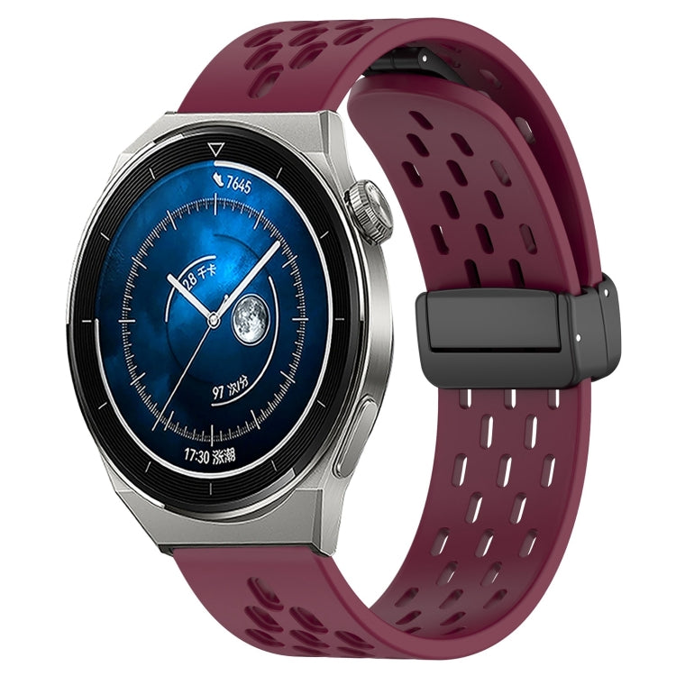 Pour Huawei Watch GT3 Pro 43mm 20mm Bracelet de montre en silicone avec fermoir magnétique pliant (vin rouge)