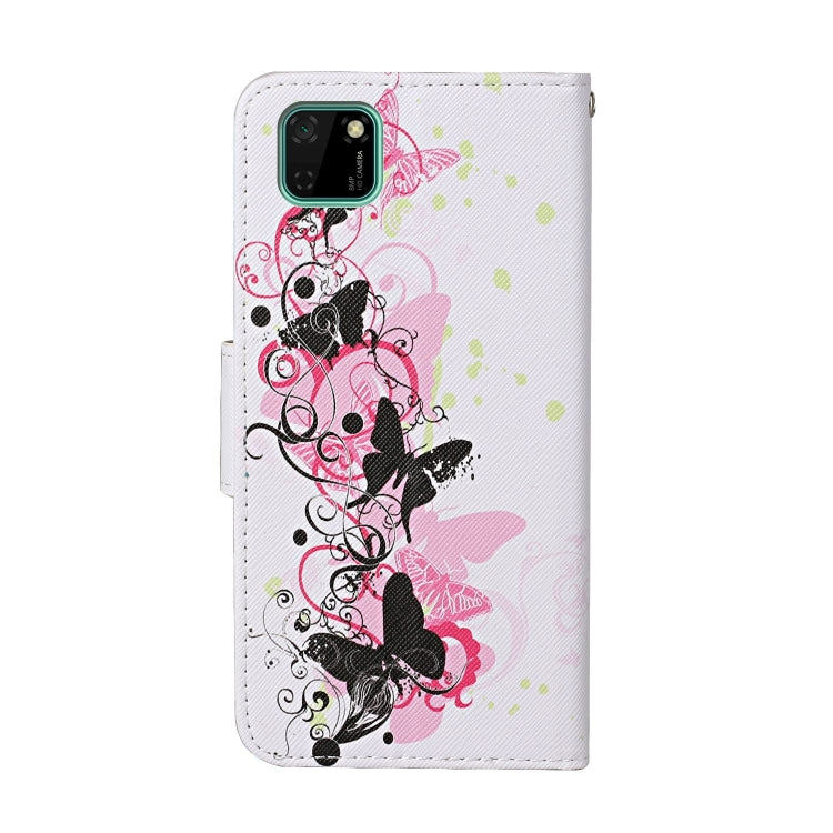 Funda de Cuero para Huawei Y5P con Tapa Horizontal, Soporte, Ranuras para Tarjetas y Billetera (Cuatro Mariposas)