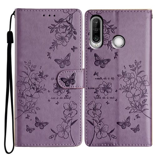 - 1x Funda de Cuero con Relieve Butterfly Love Flower para Huawei Y6P (Púrpura)