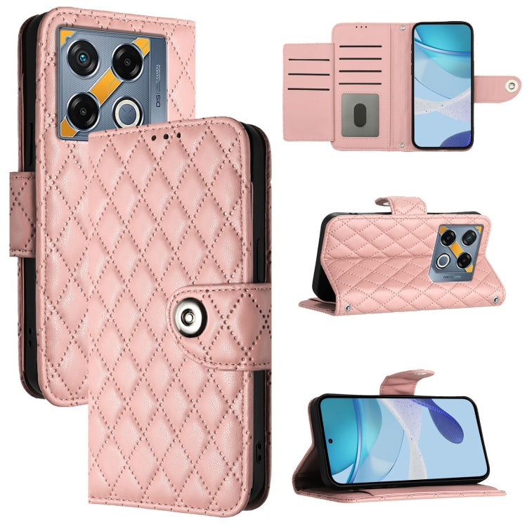 Pour Infinix GT 20 Pro X6871 Étui de téléphone en cuir à texture rhombique avec lanière (rose corail)
