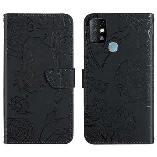 Funda de Cuero para Infinix Hot 10 Ht03 con Tapa en Relieve Skin Feel Butterfly (Negro)
