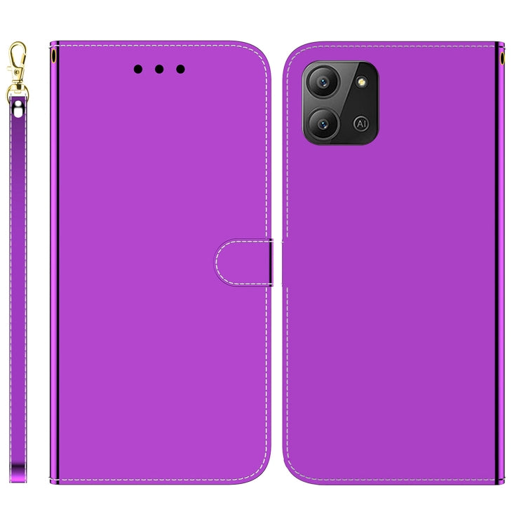 Funda de Cuero con Tapa Horizontal para Infinix Hot 11 (2022) Superficie Espejo Imitado (Púrpura)