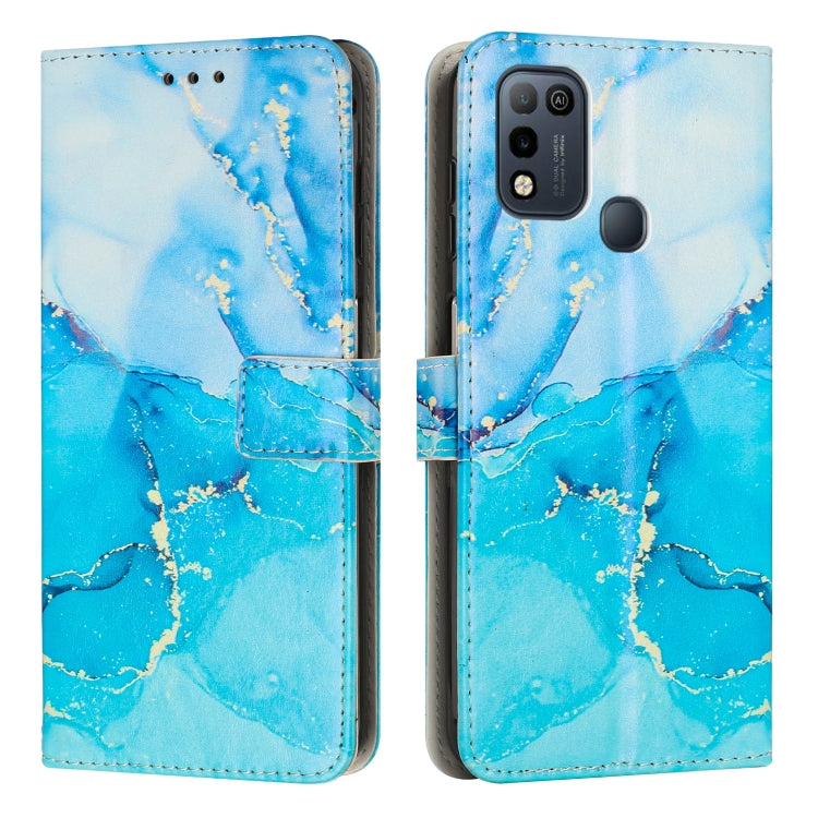 Caja de Teléfono para Infinix Hot 11 Play de Cuero con Patrón Mármol Pintado (Azul Verde)