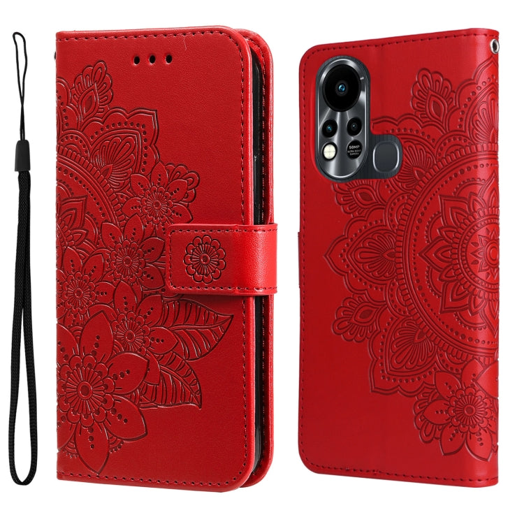 Funda Flip para Infinix Hot 11S Flores de 7 Pétalas (Rojo)