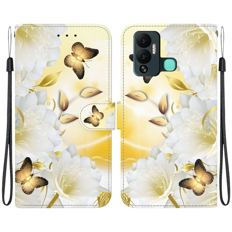 Estuche de Cuero para Infinix Hot 12 Play con Dibujo Coloreado y Textura de Cristal (Epiphyllum Mariposa Dorada)