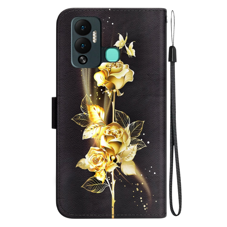 Estuche de Cuero para Infinix Hot 12 Play con Dibujo Coloreado y Textura de Cristal (Mariposa Dorada Rosa)